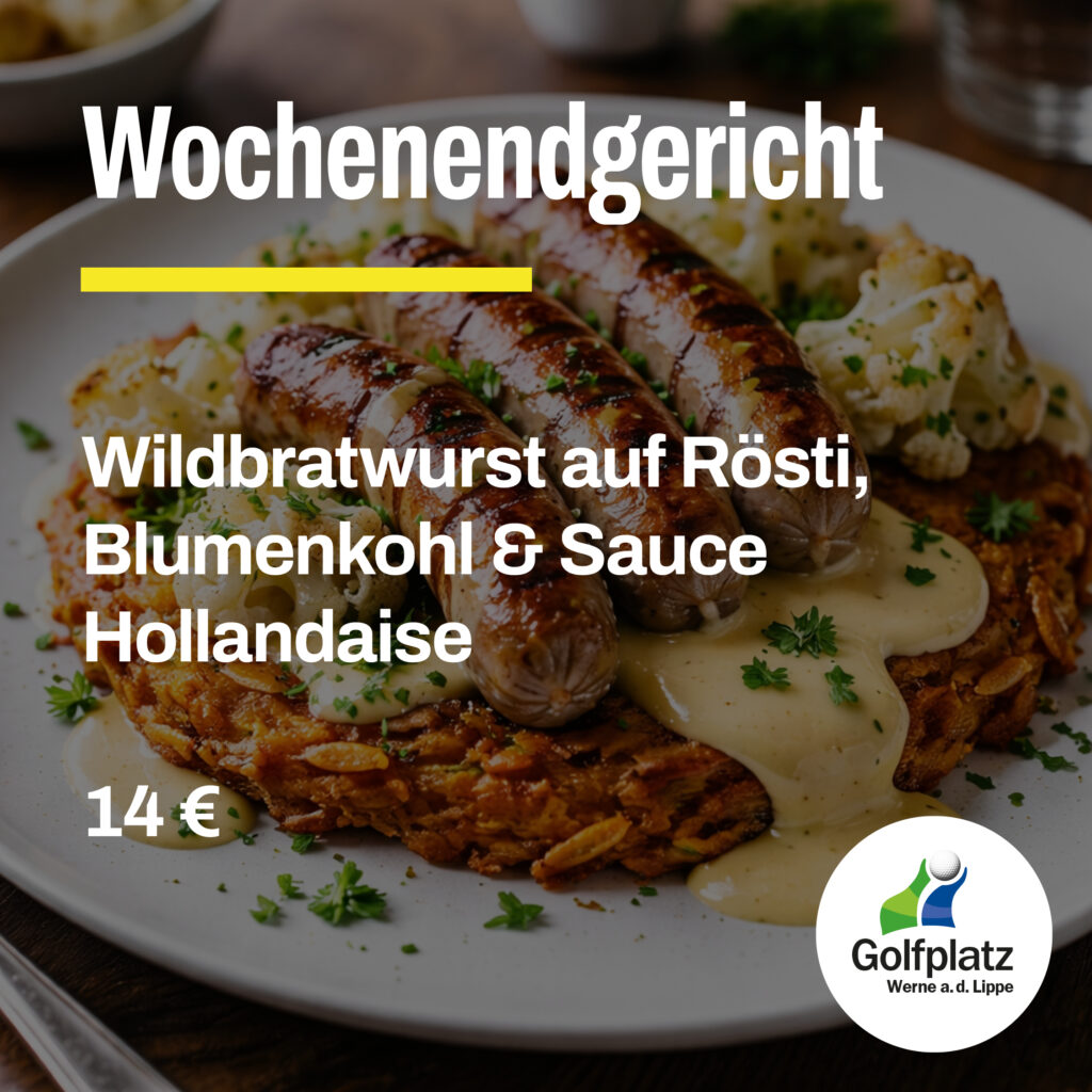 🚩 Wochenendgericht: Wildbratwurst auf Rösti, Blumenkohl & Sauce Hollandaise 14,00