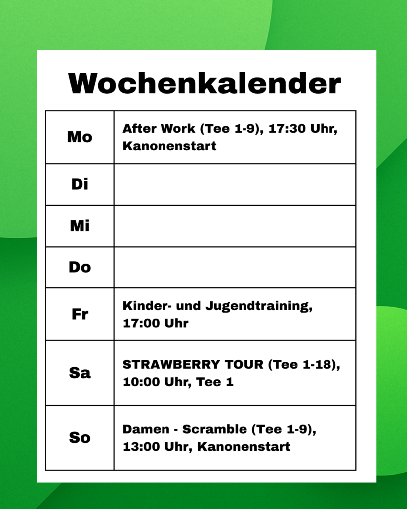 Liebe Mitglieder, liebe Golffreundinnen und -freunde +++ Hier kommt die Wochen-Info vom Montag, 27.04. bis Sonntag, 03.05.2026.
